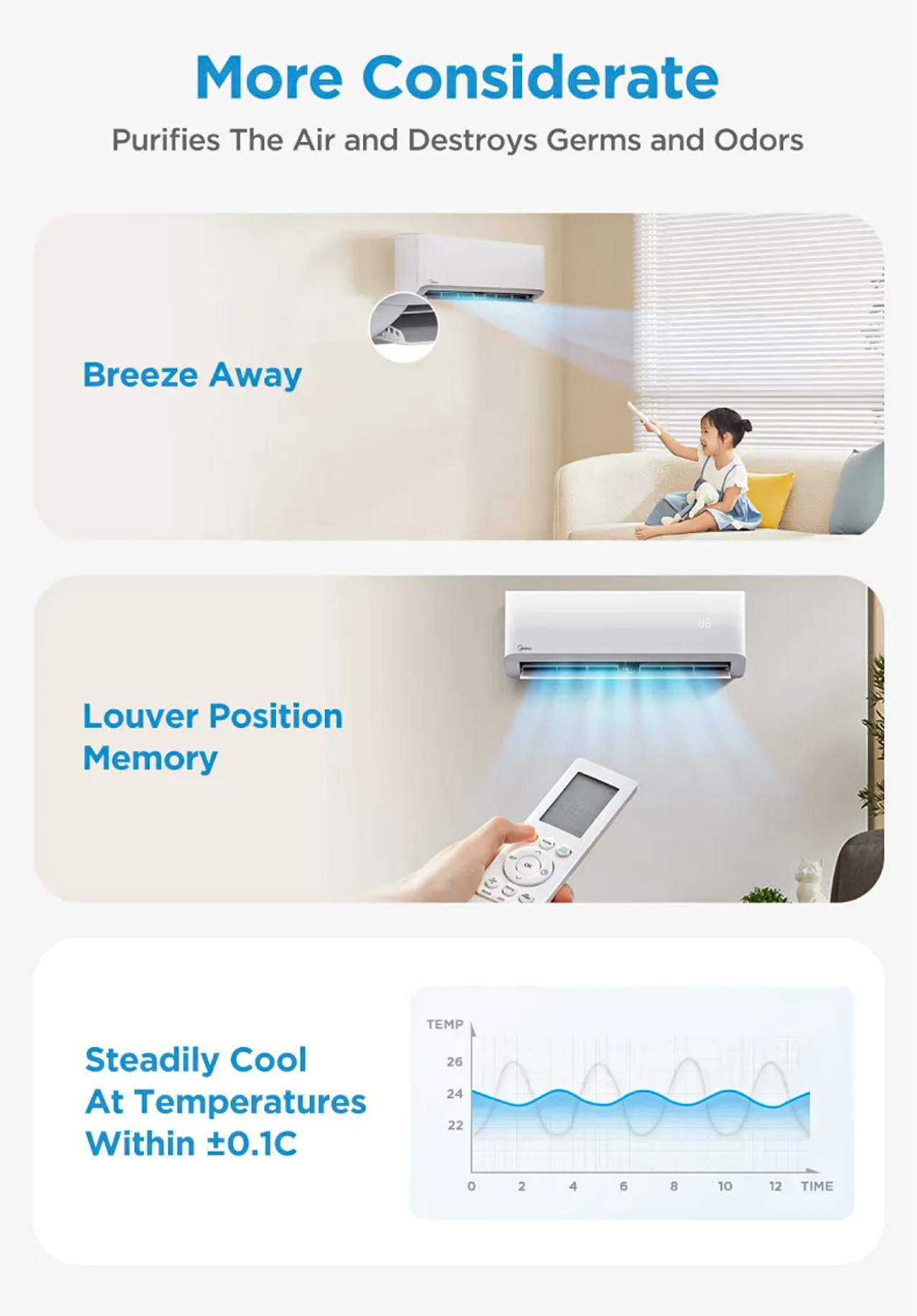 Lowers the temperature by 6°C in just 10 mins. - I-Clean + Air Magic