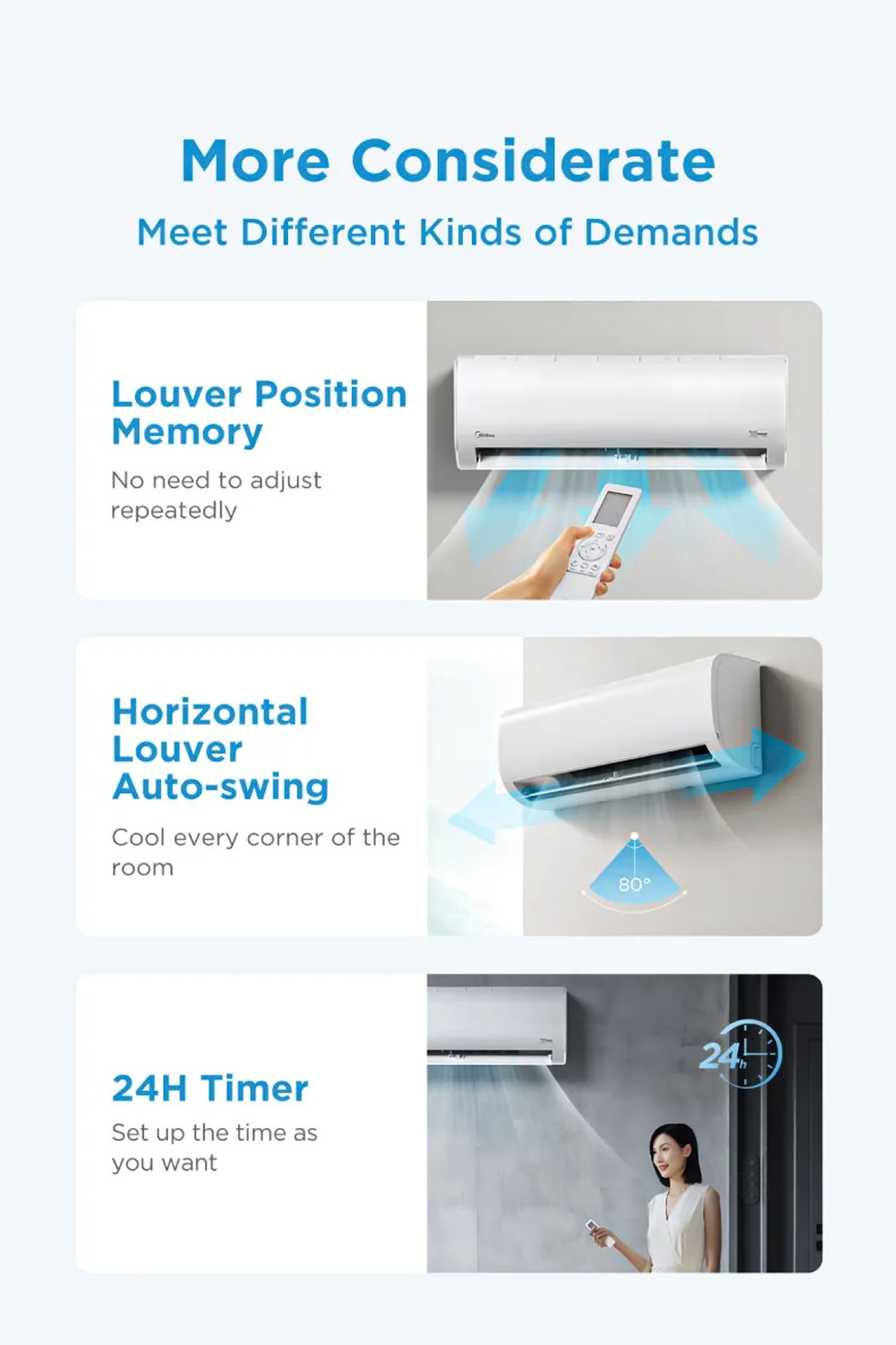 The app allows you to easily control the air conditioner and set timers. Turn on the air conditioner before you get home and be greeted with the perfect temperature. The app supports Android and iOS systems. (APP : SmartHome)